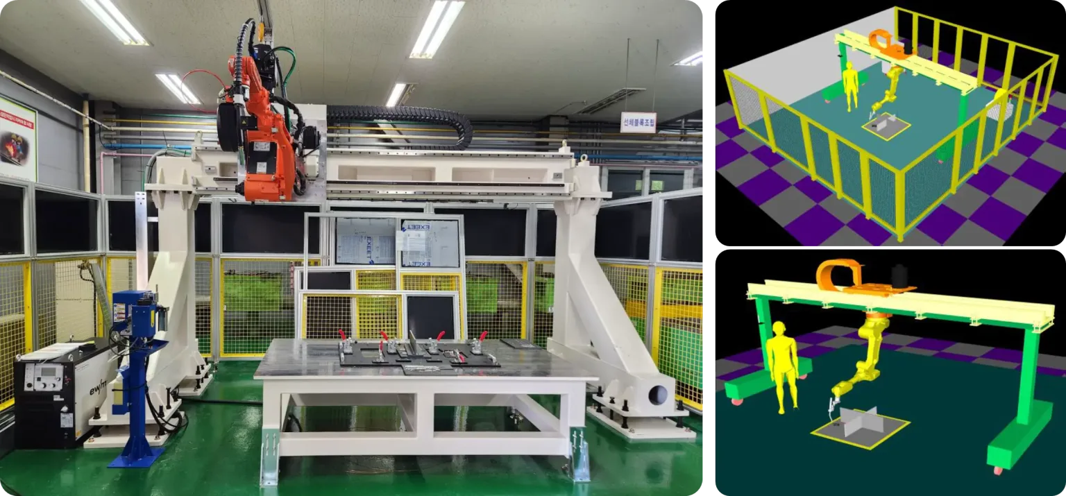 국내 최대 산업용 로봇 공급사인 현대로보틱스 제품과 기타 제조사의 로봇을 활용한 로봇기반 자동화 적용.