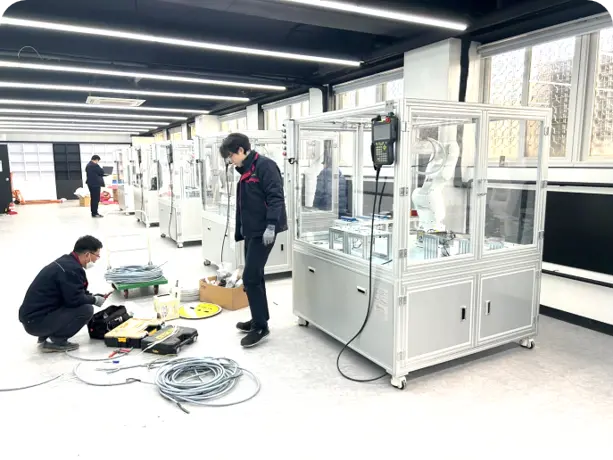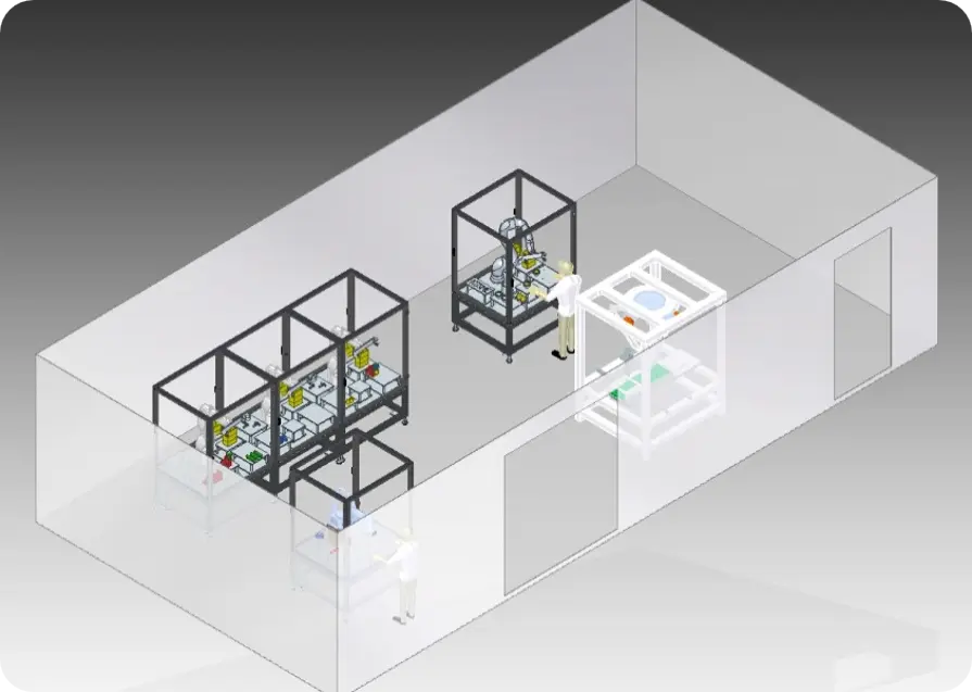 로봇 주변 설비와 공정 시스템을 연계한 최적의 자동화 시스템 설계 및 구축 서비스 제공.