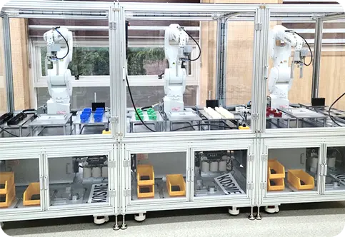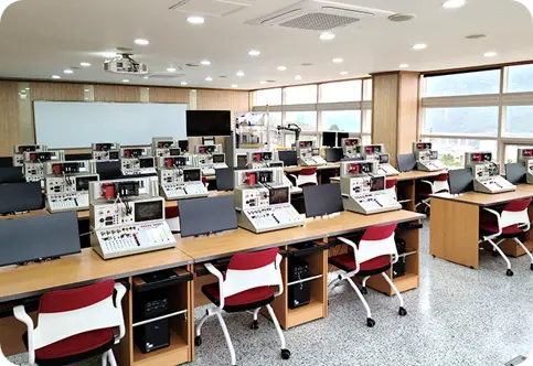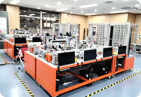 대학 및 정부기관과 연계하여 산업용 로봇 운용부터 공정제어, 생산/물류/품질 통합관리까지 차세대 제조 환경에 필수적인 실습 환경을 제공합니다.
